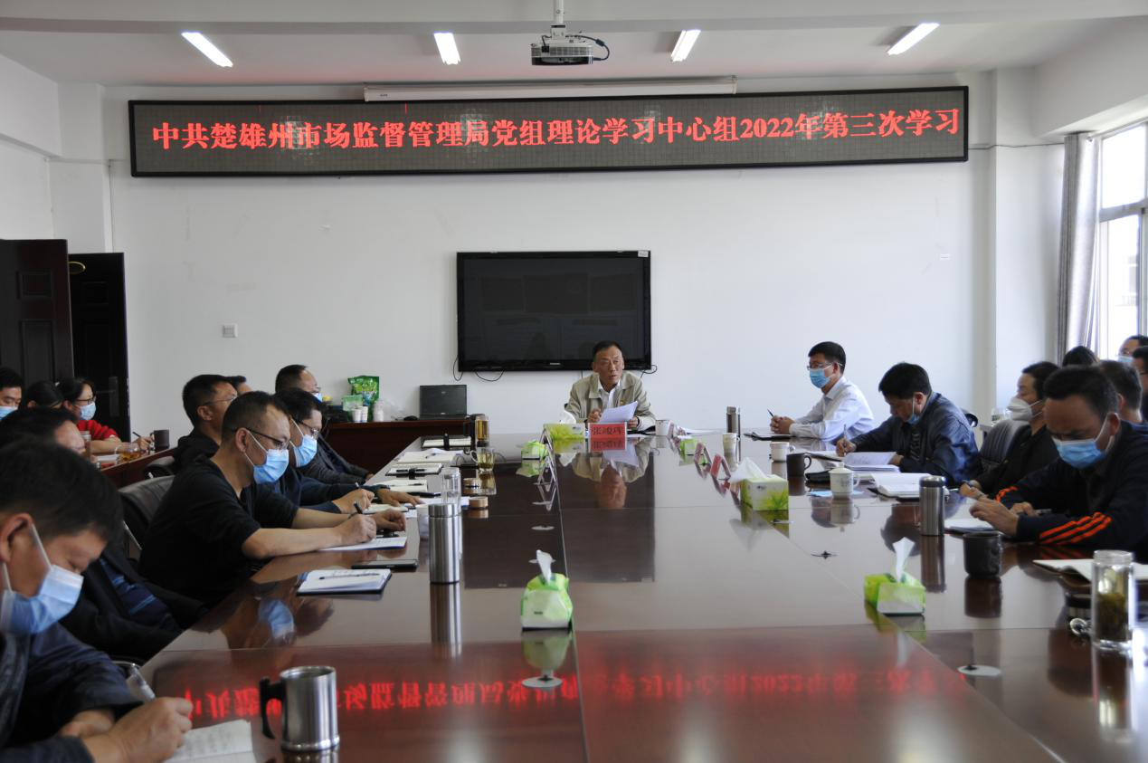 5月7日下午,楚雄州市场监督管理局举行党组理论学习中心组2022年第三次集体学习。党组书记、局长张竣珲主持会议。局领导班子成员、二级巡视员、二级、三级、四级调研员和局机关、开发区分局和直属事业单位负责人参加学习。